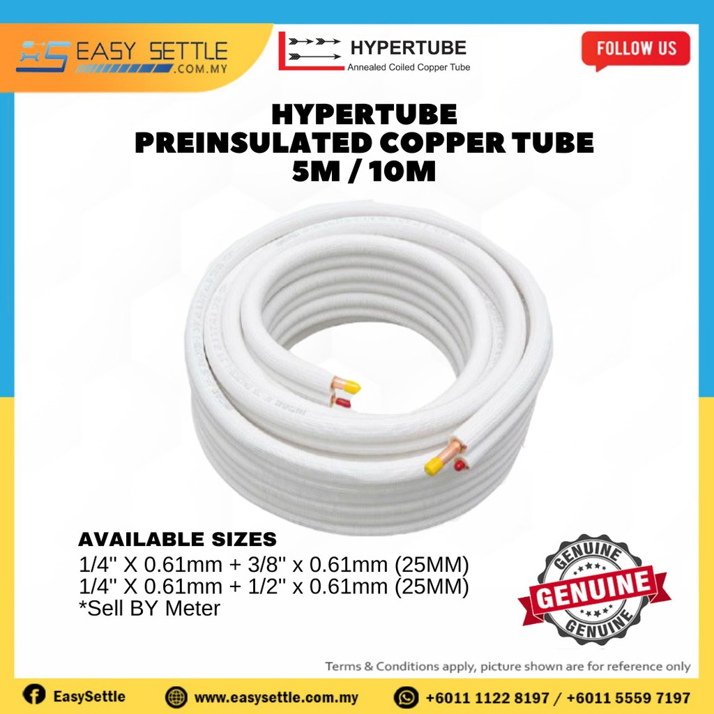 Japan Style Hypertube 0 61mm Preinsulated Aircond Copper Tube 1hp 1 5hp 2hp 2 5hp Copper With Insulation Copper Pipe Shopee Malaysia