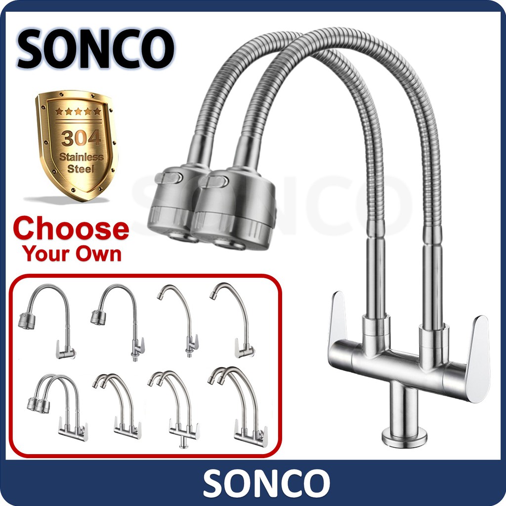 Sonco Sus304 Stainless Steel Faucet Pillar Mounted Sink Wall Tap Double Flexible Kitchen Wall Tap Kepala Paip Sinki Shopee Malaysia
