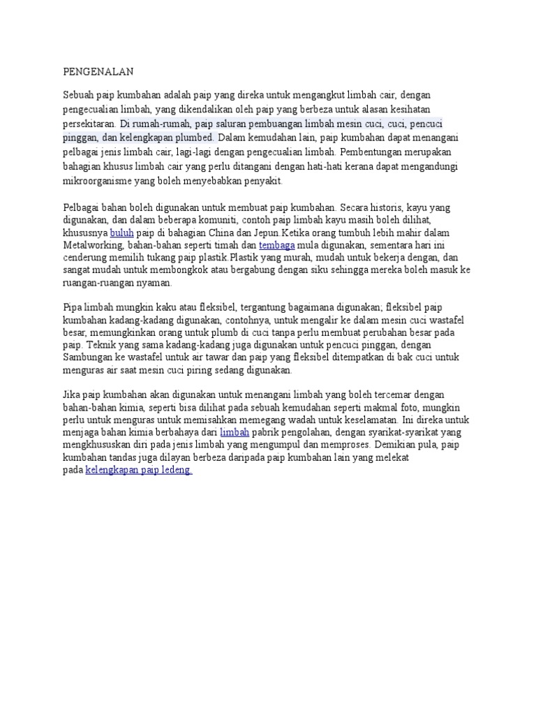 Pengenalan Sebuah Paip Kumbahan Adalah Paip Yang